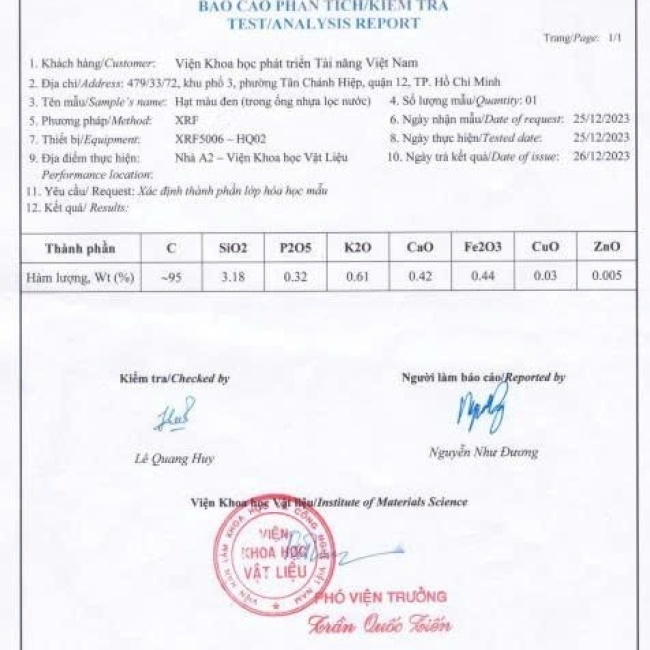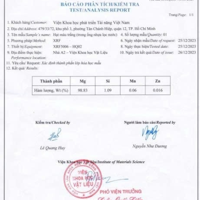 Chất lượng nước: pH 8.5 – 9.0, bền vững 72h ở mọi nhiệt độ